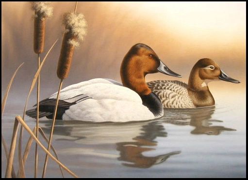 Canvasbacks 13 x 18 in. Acrylic on Board. Price: Artist's Collection. Highly refined smooth surface Competition Quality painting... ornithologically correct birds painted from life.